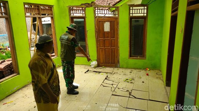 "Awalnya retak-retak dulu. Pas kemarin sekitar jam 10 an rumah saya ambruk, sekarang udah gak bisa dihuni lagi," ujar Ujang, Jumat (1/4/2022).
