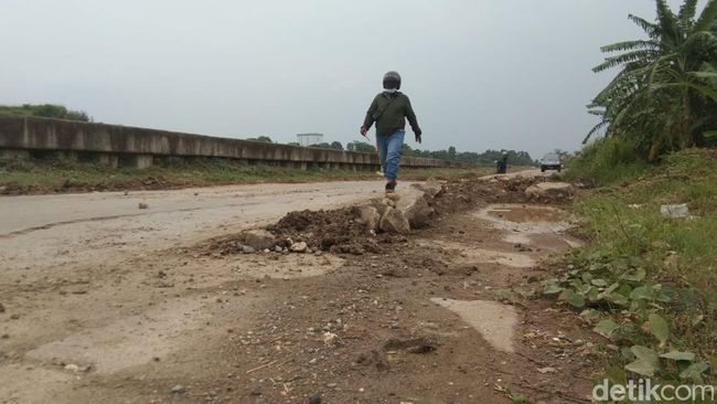 Dari pantauan detikJabar di lokasi, jalan terlihat rusak di sejumlah titik di ruas jalan sepanjang tujuh kilometer itu. Kerusakan pun beragam mulai dari jalanan yang berlubang, retak hingga berlumpur.