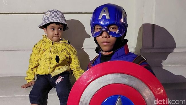 Pengunjung yang ingin berfoto dengan Sandi, bebas meminta gaya yang diinginkan, tangan meninju atau mengibaskan tameng khas Kapten Amerika.