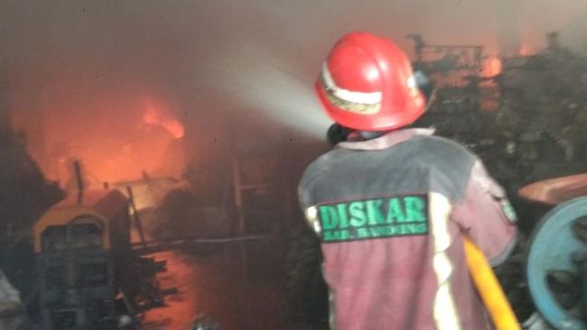 Api melalap gudang aksesori sepeda motor di Cileunyi, Kabupaten Bandung. Kerugian akibat insiden kebakaran ini berkisar mencapai Rp 1 miliar.