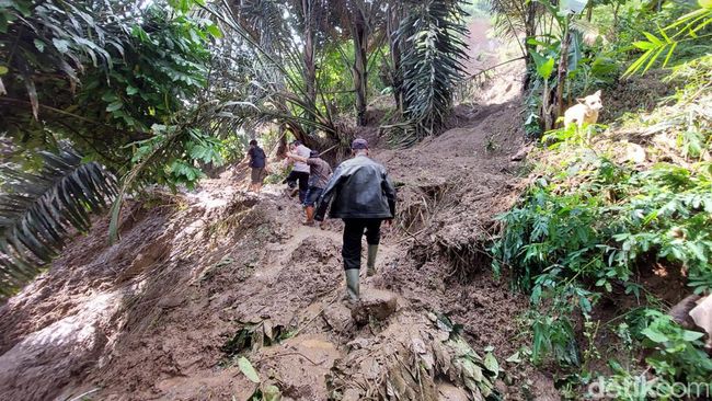 "Awalnya itu kan hujan, terus terdengar suara suara 'brukk'. Ternyata itu longsor dari tebing di pinggir rumah saya," ungkap Ajat kepada detikJabar, Jumat (15/4/2022).