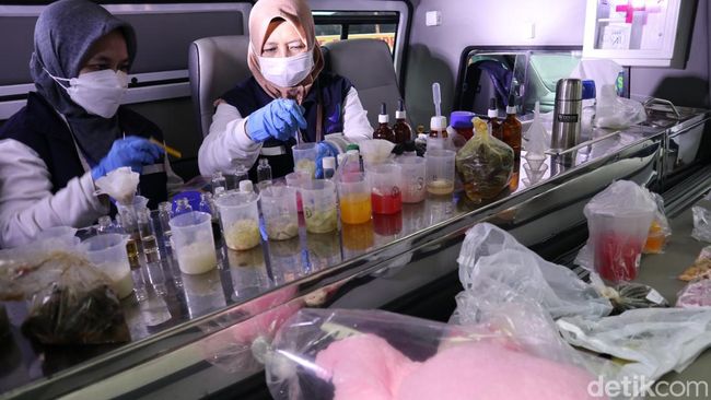 Pantauan detikJabar, petugas Balai Besar POM mendatangi satu persatu penjual takjil di Jalan Pusdai tersebut. Mereka mengambil sampel dari masing-masing jenis takjil seperti kolak, kolang-kaling, kerang, mie kuning hingga cincau.