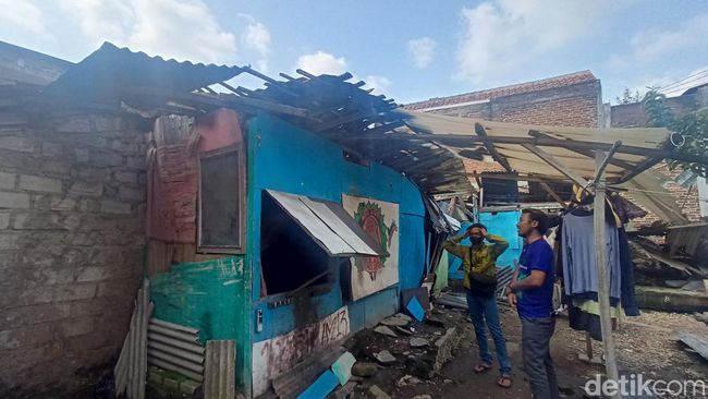 Seperti pantauan detikJabar, kondisi depan rumah masih berdiri namun atap rumah sudah ambruk. Di dalam rumah, kondisi amat berantakan, sejumlah kayu, terpal, genting hingga batu bata berhamburan di mana-mana.