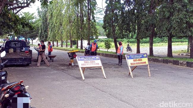 Hal itu diungkap Bupati Sukabumi Marwan Hamami saat ditemui detikJabar, Sabtu (23/4/2022). Marwan mengatakan saat ini proses penguatan hingga perbaikan jalan terkendala cuaca.