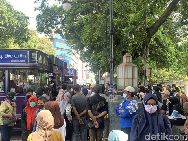 Diperkirakan, angka peminat Bus Bandros selama libur lebaran mencapai ribuan orang di Alun-Alun Bandung. Padatnya bahu jalan Asia Afrika diprediksi terus berlangsung sampai akhir pekan ini.