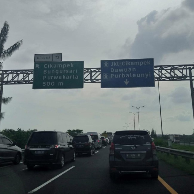 "Kemacetan dimulai dari kilometer 72 di jalan Tol Cikampek menuju Jakarta," ucap Triono.