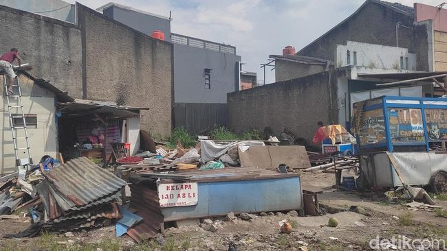 Sementara lapak pedagang lain, ada yang sudah rata dengan tanah. Hanya tersisa puing-puing bangunan yang terlihat dikumpulkan oleh pemiliknya untuk membangun kembali lapak seadanya di sana.