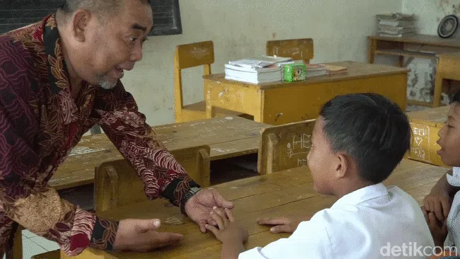Suara deru motor 4 tak, bergemuruh di halaman SDN Cukangbatu, Bojongsawi, Desa Tegalega, Kecamatan Cidolog, Kabupaten Sukabumi. Belum sempat memarkirkan motor sejumlah pelajar berlarian satu-persatu menyalami sosok pria paruh baya pengendara motor tersebut.
