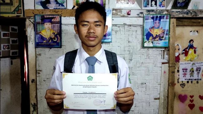 "Anak saya ini pintar, dia selalu ingin jadi seperti idolanya pak Habibie. Tapi saya sendiri merasa bersalah karena saya enggak bisa berbuat apa-apa. Ekonomi keluarga seperti ini,'' kata Elin.