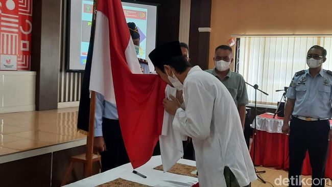 Aris Asruroji, narapidana terorisme (napiter) yang pernah tergabung Jamaah Ansharut Daulah (JAD) Majalengka, berikrar kembali setia kepada Negara Kesatuan Republik Indonesia (NKRI).
