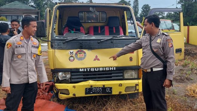 "Truk terus melaju menabrak dua orang pejalan kaki Didin dan Mamad yang sedang berdiri di bahu jalan sebelah kanan. Dikarenakan jarak sudah terlalu dekat maka kecelakaan lalu lintas tersebut tidak dapat terhindarkan lagi," ujar Fajar.