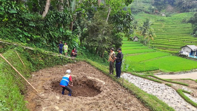 Sebuah lubang berdiameter 1 meter muncul tiba-tiba di sawah milik warga di Kampung Cigondok, Desa Mandalamukti, Kecamatan Cikalongwetan, Kabupaten Bandung Barat (KBB).