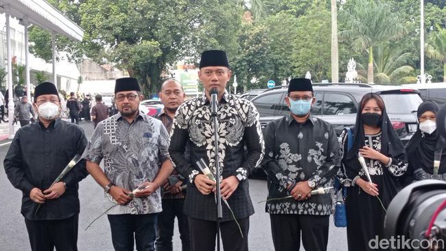 "Takziah, kami khusus datang dari Jakarta berada di rumah dinas Gubernur Jabar Ridwan Kamil. Tentunya secara khusus tadi saya menyampaikan dukacita yang mendalam, dari saya pribadi, keluarga juga mewakili kader Demokrat," kata AHY usai takziah, Rabu (8/6/2022).