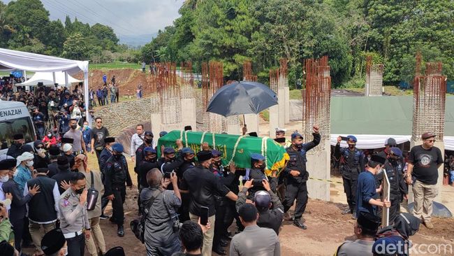 Jenazah Emmeril Kahn Mumtadz tiba di area pemakaman. Eril akan segera dikebumikan di pemakaman kelurga.
