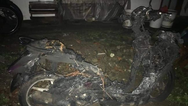Mendengar ada keributan warga yang berada di sekitar lokasi kejadian lantas berhamburan keluar rumah. Mereka melihat satu unit motor terbakar kemudian berusaha memadamkan api.