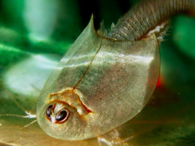 Hewan itu, mirip dengan fosil dan berwarna merah muda. Bentuknya mirip dengan kepiting tapal kuda atau belangkas yang ada di Indonesia. Uniknya, hewan tersebut memiliki tiga mata.