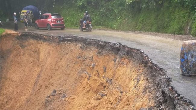 "Kalau roda dua masih bisa melintas, itupun harus sangat hati-hati. Tetap kami imbau agar mencari jalan alternatif, tidak memaksakan melintas karena longsoran masih terus terjadi," kata dia, Minggu (19/6/2022).