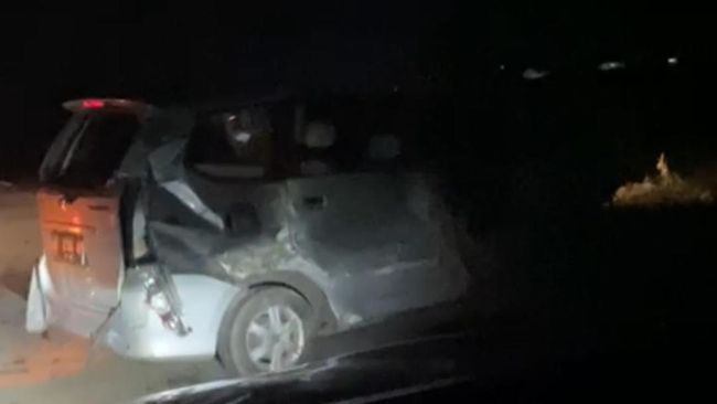 Selain itu, seorang korban juga terlihat tergantung di pintu kemudi dan menjulur ke luar. Dari keterangan yang dihimpun pihak kepolisian, diduga kuat mobil tersebut menabrak pembatas jalan dan sempat terguling.
