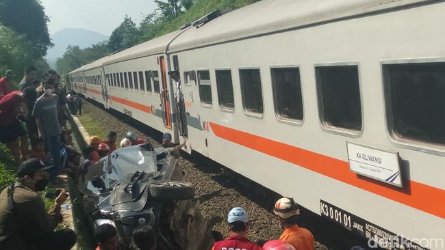 "Jadi saat kejadian sekitar pukul 13.30 WIB, mobil hendak melintas di perlintasan tanpa palang pintu. Tapi kondisi saat itu di depan mobil ada kendaraan lain, sehingga saat kereta melintas mobil tidak sempat menyeberang jalur kereta. Akibatnya mobil tertabrak dan terseret kereta," ungkap Kapolsek Cilaku AKP Nandang.