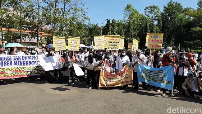 Masa menyuarakan tuntutan utama optimalisasi formasi Pegawai Pemerintah dengan Perjanjian Kerja (PPPK) untuk 2.426 guru honorer. Mereka masuk kategori 2, lulus passing grade dan tiga tahun masuk daftar Data Pokok Pendidikan (Dapodik), serta mempunyai Sertifikat Pendidik (Serdik).