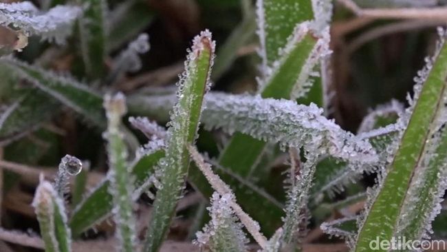 Berdasarkan pantauannya, embun es terlihat di sejumlah titik. Lokasinya tersebar.