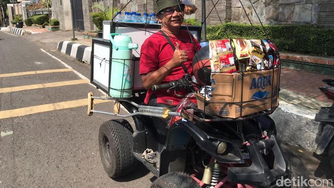 Karena tertekan kebutuhan, dengan satu kakinya ia membawa motor dan berjualan kopi keliling. "Terpaksa bapak pakai motor, jadi begini lah berkeliling sampai sekarang, sudah ada setahun lebih," sambungnya.