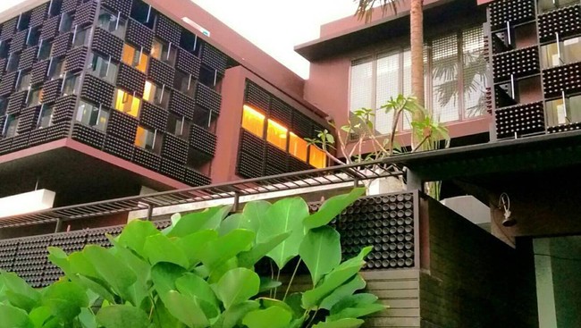 Rumah yang terletak di Jalan Cigadung Selatan 7/28 Bandung ini menarik perhatian. Betapa tidak, dinding rumah berasal dari material yang tidak biasa, yaitu botol kaca bekas minuman berenergi.