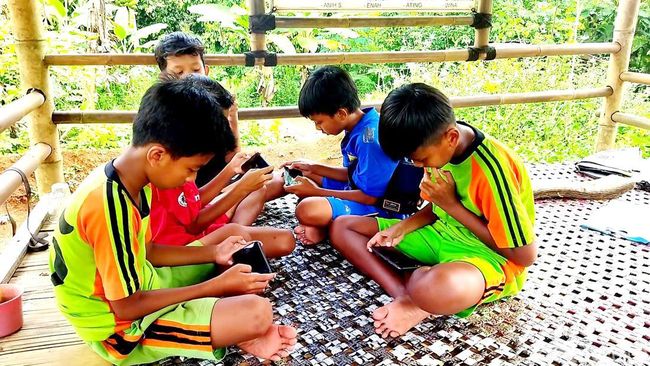 Seperti yang terlihat, sejumlah anak berkumpul sambil memegang smartphone. Ada yang bermain game, nonton video YouTube, berkomunikasi dan lainnya.