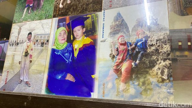 Kasih sayang Andi kepada ibunya, dapat dilihat dari koleksi foto-foto yang dipasang di dinding rumahnya.