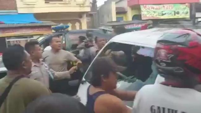 Seorang penumpang yang keluar dari dalam mobil kemudian dihakimi dengan cara dipukul bagian kepalanya. Sebagian lagi memecahkan kaca depan mobil dengan benda keras.