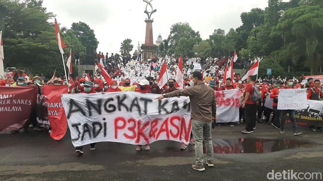 "Kami datang ke sini mau sampaikan aspirasi agar tenaga honorer kesehatan diangkat jadi ASN atau PPPK. Semuanya ada 1.475 orang. Bukan hanya kuota PPPK hanya 47 orang. Jauh atuh (dong) pak. Kami sudah bekerja jadi garda terdepan dalam penanganan COVID- 19 dua tahun ini," kata Asep Rosihan Anwar, korlap aksi demo kepada detikJabar.