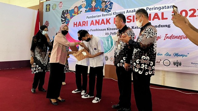 Peringatan hari anak turut dirasakan sejumlah anak yang tengah berhadapan dengan hukum. Sebanyak 52 anak yang dibina di Lembaga Pembinaan Khusus Anak (LPKA) Bandung mendapatkan remisi.