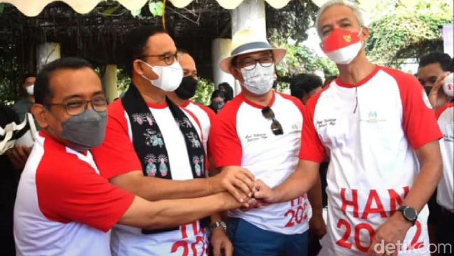 Gubernur Jawa Barat Ridwan Kamil (RK) mengunggah posenya yang tampak akrab dengan Gubernur DKI Anies Baswedan, Gubernur Jawa Tengah Ganjar Pranowo dan Mensesneg Pratikno. Momen keakraban keempatnya diunggah RK di akun instagram pribadinya.