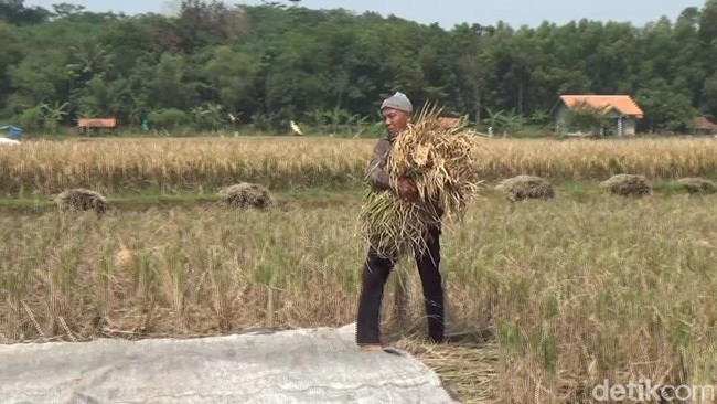 "Normalnya lima ton hasil panen padi, ini paling sekarang sekitar tiga ton. Sekarang harga gabah Rp. 420 ribu perkwintal normalnya 500 Ribu Perkwintal. Pupuk juga suka susah, tanaman udah waktunya di gemuk pupuknya enggak ada," curhat Ujang.