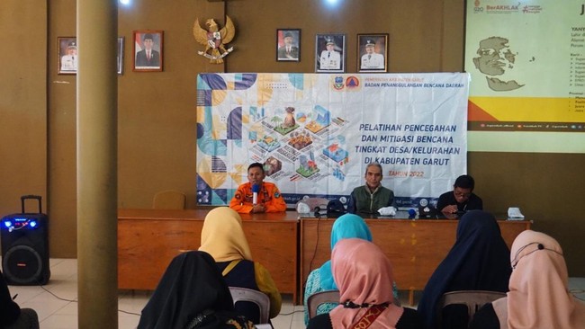Badan Penanggulangan Bencana Daerah (BPBD) Kabupaten Garut memberikan pelatihan pencegahan dan mitigasi bencana tingkat desa dan kelurahan untuk masyarakat di Kabupaten Garut. Pelatihan tersebut digelar di kantor Desa Sirnajaya, Kecamatan Tarogong Kaler, Kabupaten Garut, Selasa (26/7/2022).