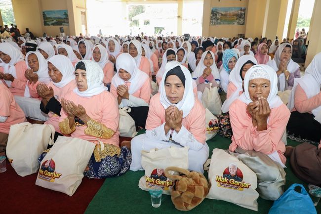 Selain doa bersama, relawan Mak Ganjar juga membagikan 2.000 sembako dan santunan kepada anak-anak yatim.