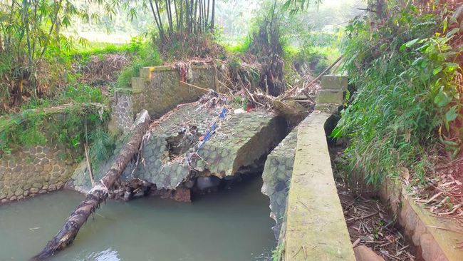 "Terancam gagal panen, saluran irigasi untuk mengairi lahan pesawahan rusak setelah diterjang banjir. Bendungan yang jebol itu bendungan Cimuncang, Leuwi Oken, Cukang Kaung, Alun dan Bendung Bojongsawah," kata Endusmuradin, Rabu (27/7/2022).