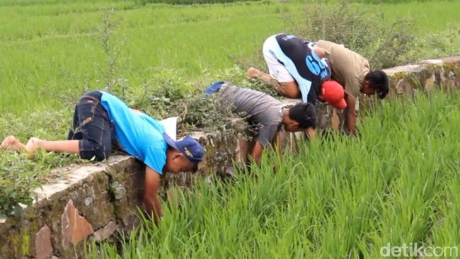 Dengan cekatan, bocah-bocah itu memungut satu demi satu keong yang menempel di tangkai padi yang berwarna hijau. Mereka sudah hapal tiap lekuk dan habitat dari keong-keong yang ukurannya lebih besar dari buku jari itu.