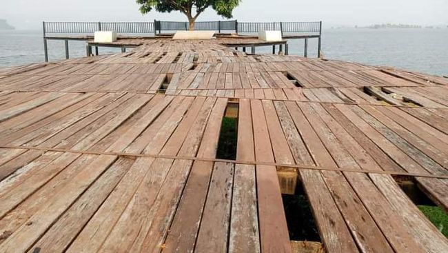 Wahana yang tersusun dari balok-balok kayu tersebut tampak terlihat bolong-bolong atau sejumlah balok kayunya banyak yang terlepas.