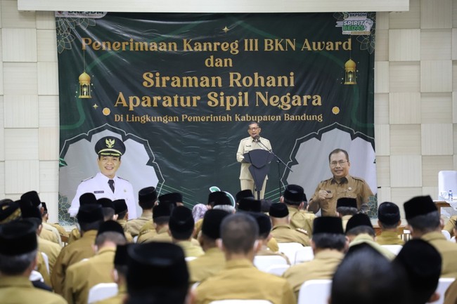 Apresiasi tersebut diberikan langsung Kepala Kanreg III BKN Bandung, Tauchid Djatmiko kepada Bupati Bandung Dadang Supriatna di sela kegiatan Siraman Rohani di Gedung Moh Toha, Soreang.