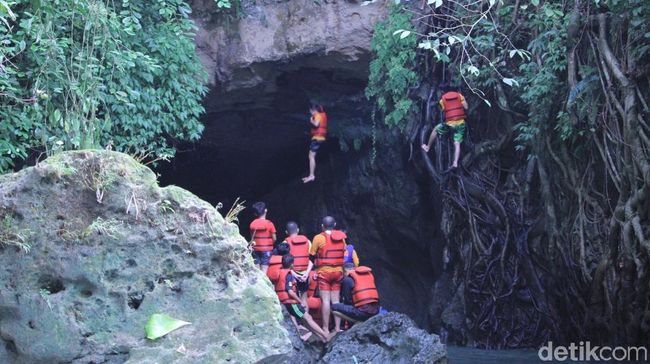 "Sewaktu rombongan bodyrafting sampai di salah satu goa di Citumang, salah satu pemandu memberikan contoh posisi melompat yang baik dan benar dari atas batu setinggi 7 meter kepada para wisatawan," ucap Hidayat.