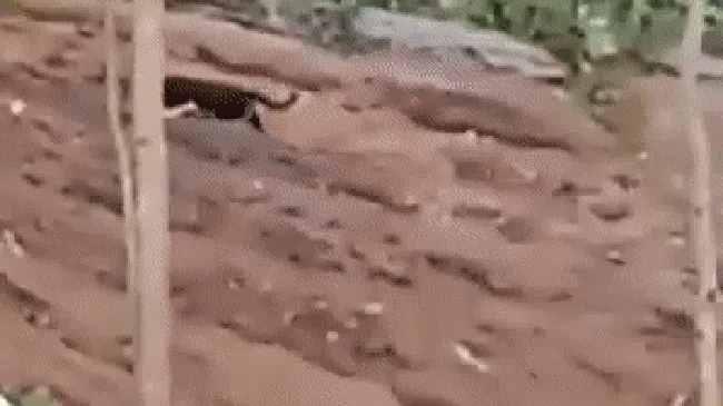 Macan tersebut terlihat berjalan di perkebunan warga yang belum ditumbuhi sayuran. Makanya lereng tersebut masih terlihat berupa tanah merah yang sudah bergelombang.