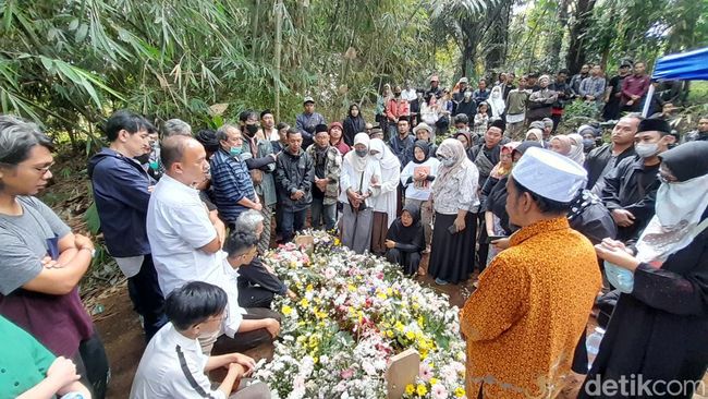 Lantunan doa serta rangkaian dan taburan bunga menjadi penutup dalam prosesi pemakaman bagi sang penyanyi balada tersebut.