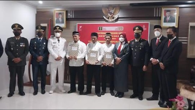 Lapas Kelas IIB Sumedang menyerahkan remisi dari Kemenkumham kepada 112 warga binaan di momen HUT ke-77 RI. Dua orang diantaranya mendapatkan remisi bebas.
