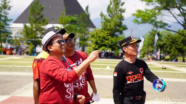 Secara spontan, keduanya beradu layangan untuk memeriahkan gelaran lomba. Seolah mengingat masa kecilnya, gerakan tarik ulur benang layangan pun diperagakan keduanya saat menerbangkan layangan.