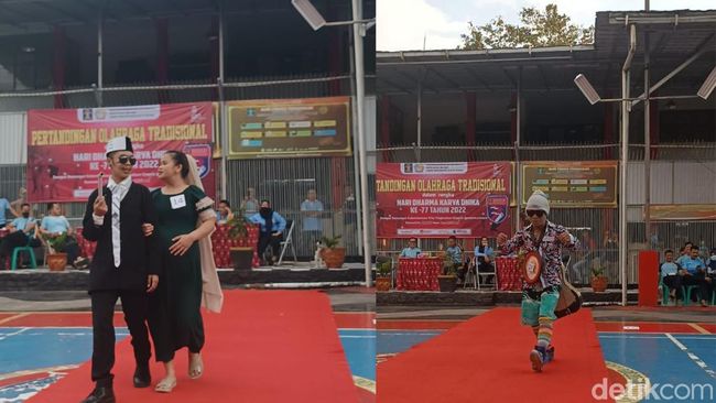 Momen perayaan HUT ke-77 Kemerdekaan RI turut dirasakan warga binaan di Lapas Kelas II B Sukabumi. Antusias warga binaan pecah saat mengikuti acara 'Nyomplong Fashion Week' yang diadakan di Lapang Serbaguna.