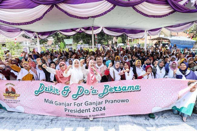 "Sedikitnya ada 1.000 emak-emak se-Karawang berkumpul untuk doa bersama. Pertama, kita mendoakan negara Indonesia, agar negara ini bisa segera pulih pasca pandemi COVID-19. Kemudian kita juga berdoa agar nantinya, Indonesia diberikan pemimpin yang tepat, yang amanah," kata Koordinator wilayah Mak Ganjar Jawa Barat Nurapsi dalam keterangan tertulis, Sabtu (20/8/2022).