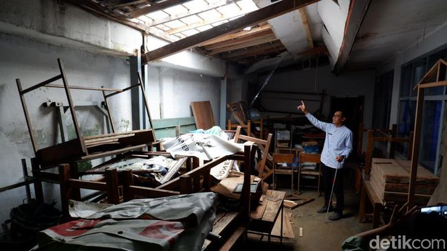 Pantauan detikJabar, sejumlah ruang belajar di SLB tersebut sudah tak layak lagi digunakan untuk KBM. Ada beberapa ruang yang atapnya runtuh, bocor, hingga beberapa ruangan harus disangga menggunakan batang kayu dan bambu untuk mencegah terjadinya keruntuhan bangunan yang lebih parah.
