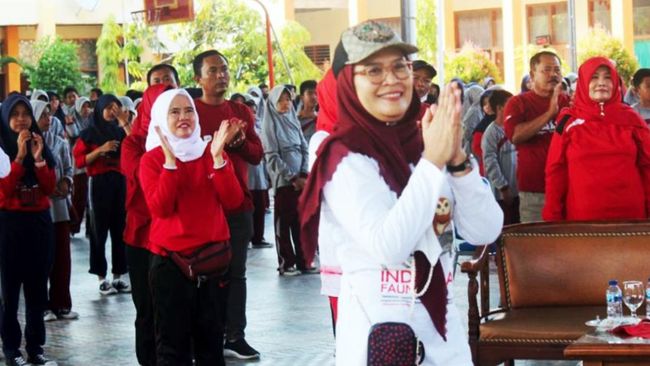 Bupati Indramayu Nina Agustina Da'i Bachtiar ikut meramaikan kegiatan pemecahan Rekor Muri Senam Kesegaran Jasmani (SKJ) Pelajar Tahun 2022 pada Sabtu (27/8). Untuk tingkat Kabupaten Indramayu, kegiatan pemecahan rekor SKJ dilaksanakan di halaman SMPN 1 Balongan.