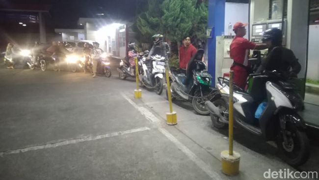 Antrean pengendara untuk mengantre pengisian BBM pun terpantau di Tasikmalaya. Warga Tasik berburu untuk mengisi tanki bensinnya penuh.